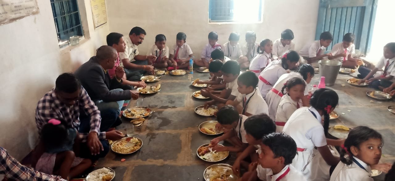न्योता भोजन, स्कूल में दिए जाने वाले भोजन में भोजन पूरक के रूप में पुलाव, पूड़ी, सब्जी, दाल, पापड़, आचार, केला, मौसमी फल एवं बच्चों के रुचिकर मिष्ठान मिठाई एवम जलेबी डिप्टी कलेक्टर ऋतुराज बिसेन, एबीईओ केशरवानी ने परिवार सहित मिलकर विद्यार्थियों को परोसा गया।