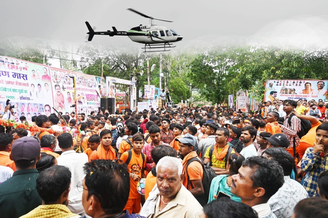 सीएम विष्णुदेव साय, ने भोरमदेव में कावड़ियों और शिव भक्तों पर हैलीकॉप्टर से पुष्प वर्षा कर  किया भव्य स्वागत