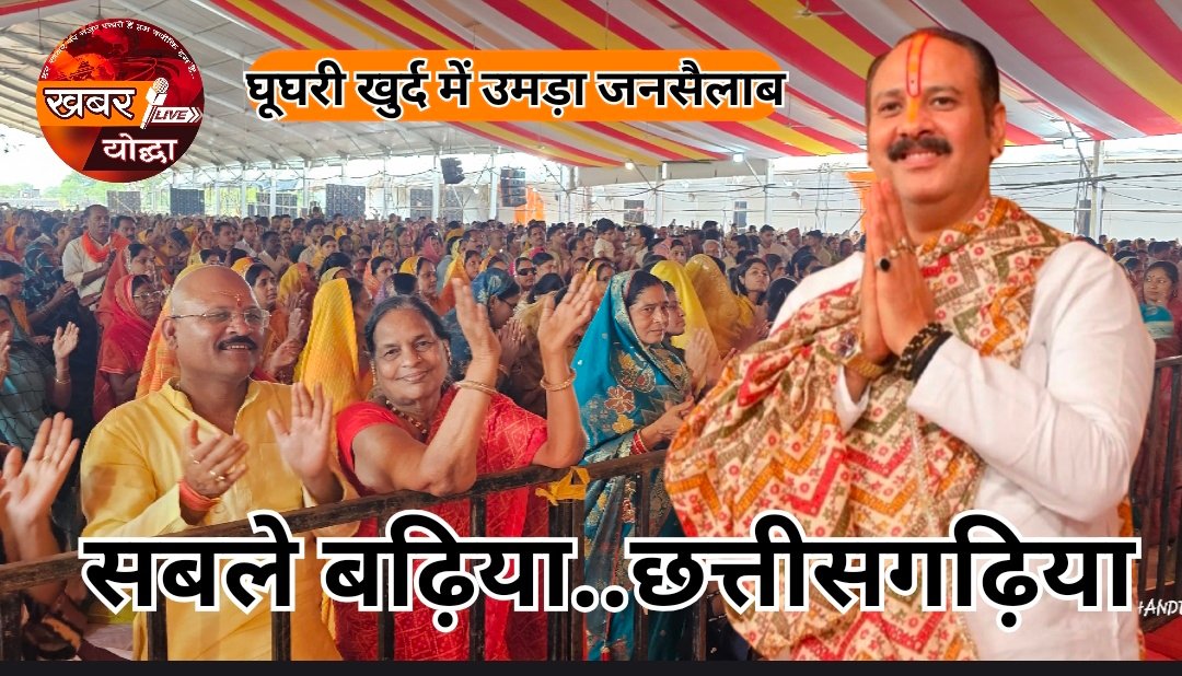कवर्धा खबर योद्धा।। कबीरधाम जिले के ग्राम घूघरी खुर्द में चल रही शिव महापुराण कथा में श्रद्धा और आस्था का ऐसा समुद्र उमड़ा है, जिसे देखने हजारों की भीड़ दूर-दूर से पहुंच रही है। प्रसिद्ध कथावाचक प्रदीप मिश्रा द्वारा 5 नवंबर से आरंभ हुई यह पांच दिवसीय कथा 10 नवंबर तक चलेगी। पहले ही दिन से कथा स्थल पर सुबह-शाम भक्तों का भारी जनसैलाब उमड़ रहा है, जिससे पूरा क्षेत्र शिवमय वातावरण में डूब गया है।