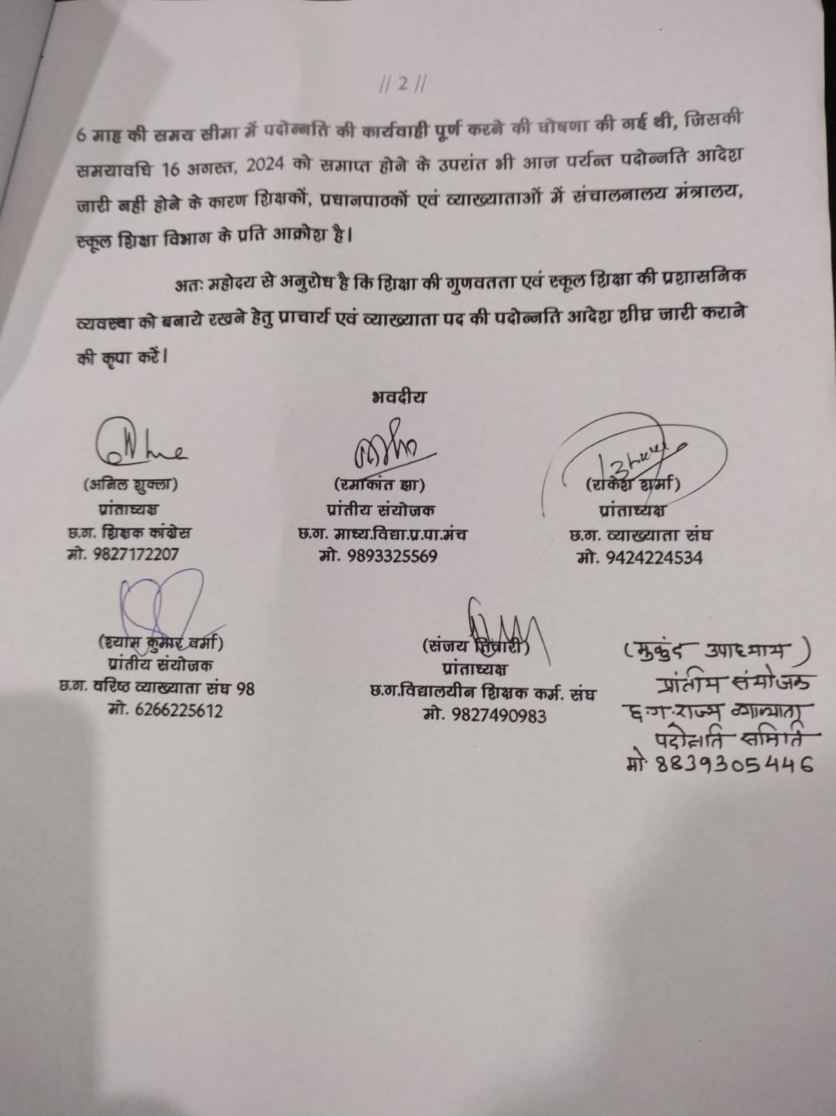 विभाग में विगत दस वर्षों से प्राचार्य एवं आठ वर्षों वर्षों से व्याख्याता पद की पदोन्नति नहीं होने के कारण प्रदेश की अस्सी प्रतिशत विद्यालय प्राचार्य विहीन हैं जिसके कारण शिक्षा गुणवत्ता एवं स्कूल प्रशासन प्रभावित हो रहा है।उल्लेखनीय है कि बजट सत्र 2024 में 16 फरवरी को विधान सभा में तत्कालीन शिक्षा मंत्री बृजमोहन अग्रवाल ने छः माह में पदोन्नति करने की घोषणा करने के बाद भी विभाग यह बता पाने की स्थिति में नहीं है कि प्राचार्य के पदोन्नति आदेश कब तक जारी हो पाएंगे।जबकि स्कूल शिक्षा विभाग के प्रदेश के मुख्यमंत्री के अधीन है।