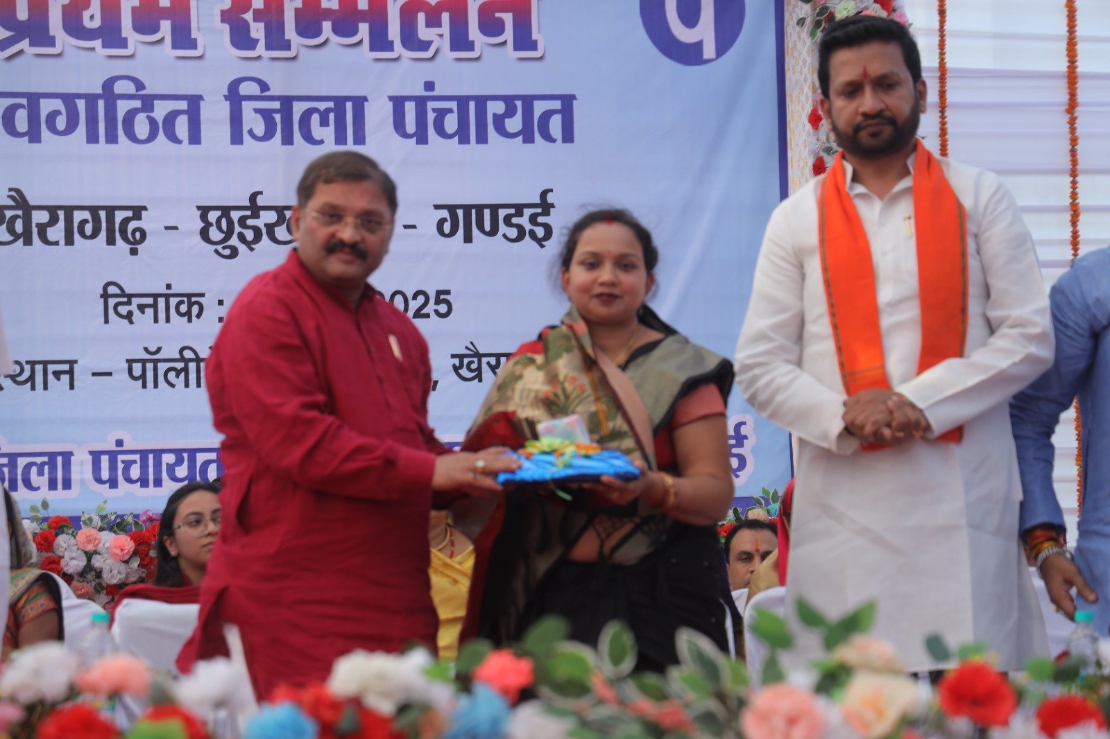खैरागढ़ खबर योद्धा आदित्य नामदेव।। नवगठित जिला पंचायत खैरागढ़-छुईखदान-गंडई के नवनिर्वाचित जनप्रतिनिधियों का प्रथम सम्मेलन आज जिला पंचायत परिसर में आयोजित भव्य समारोह के साथ संपन्न हुआ। कार्यक्रम में मुख्यअतिथि के रूप में सांसद संतोष पांडे शामिल हुए।