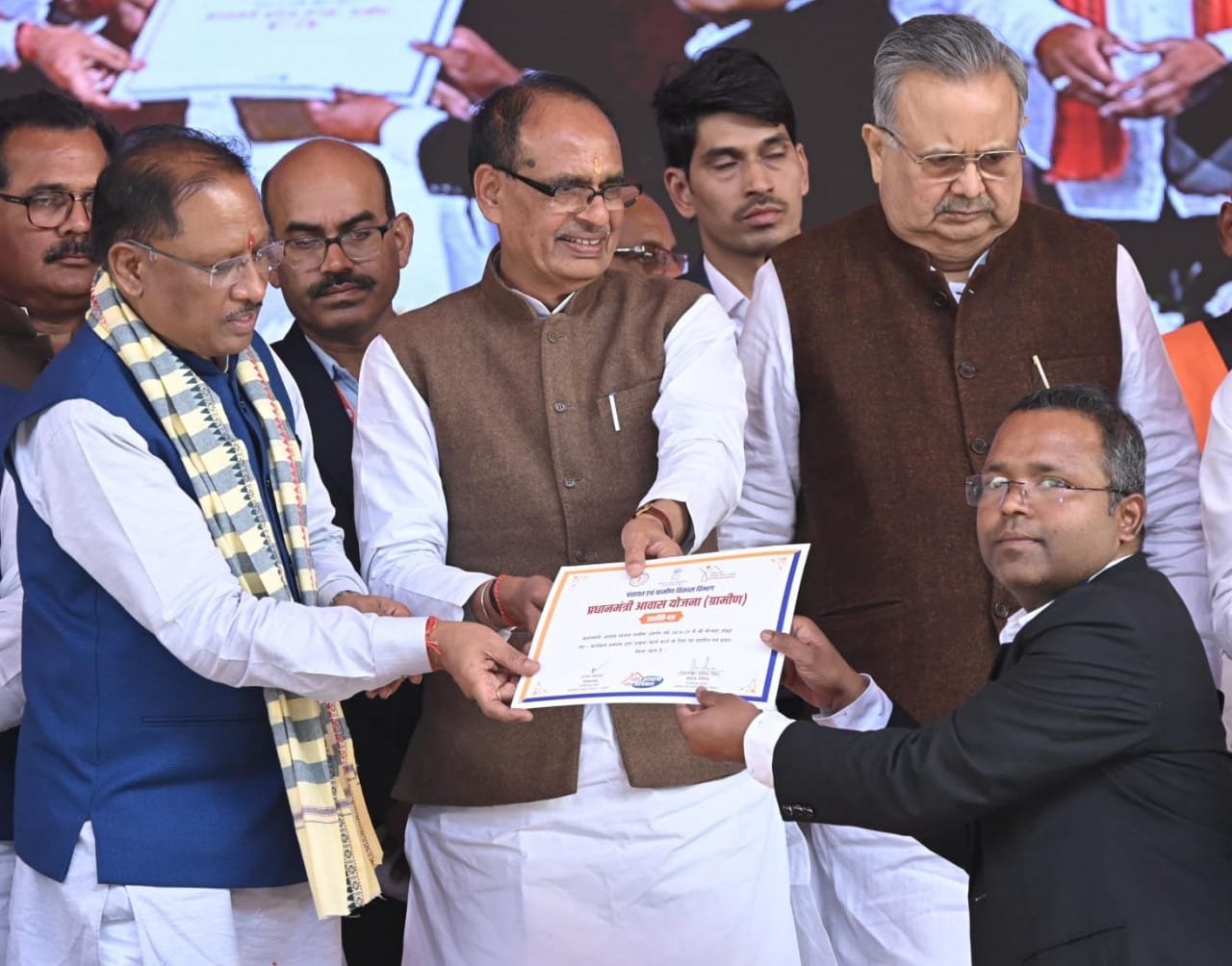रायपुर खबर योद्धा विद्या भूषण दुबे।। केन्द्रीय कृषि पंचायत एवं ग्रामीण विकास मंत्री  शिवराज सिंह चौहान ने कहा है कि केन्द्र में प्रधानमंत्री  नरेन्द्र मोदी और राज्य में  विष्णु देव साय की डबल इंजन सरकार प्रदेश की तस्वीर और तकदीर बदलने के लिए पूरी निष्ठा से कार्य कर रही है। वे आज दुर्ग जिले के नगपुरा में आयोजित मोर आवास मोर अधिकार कार्यक्रम को सम्बोधित कर रहे थे। इस अवसर पर उन्होंने प्रधानमंत्री आवास योजना के हितग्राहियों के पैर पखार कर उनका अभिनंदन किया। केन्द्रीय मंत्री श्री चौहान ने छत्तीसगढ़ में प्रधानमंत्री आवास योजना के तहत 3 लाख 3 हजार 384 नए आवासों की घोषणा की।