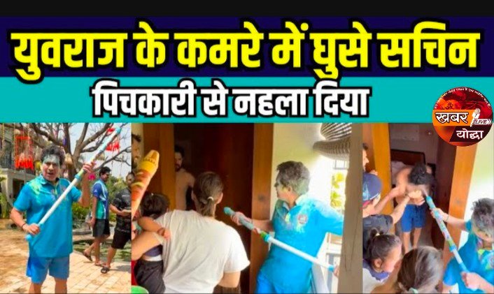 सचिन तेंदुलकर हाथों में पिचकारी लेकर पहुंचे युवराज के पास , जमकर खेले होली