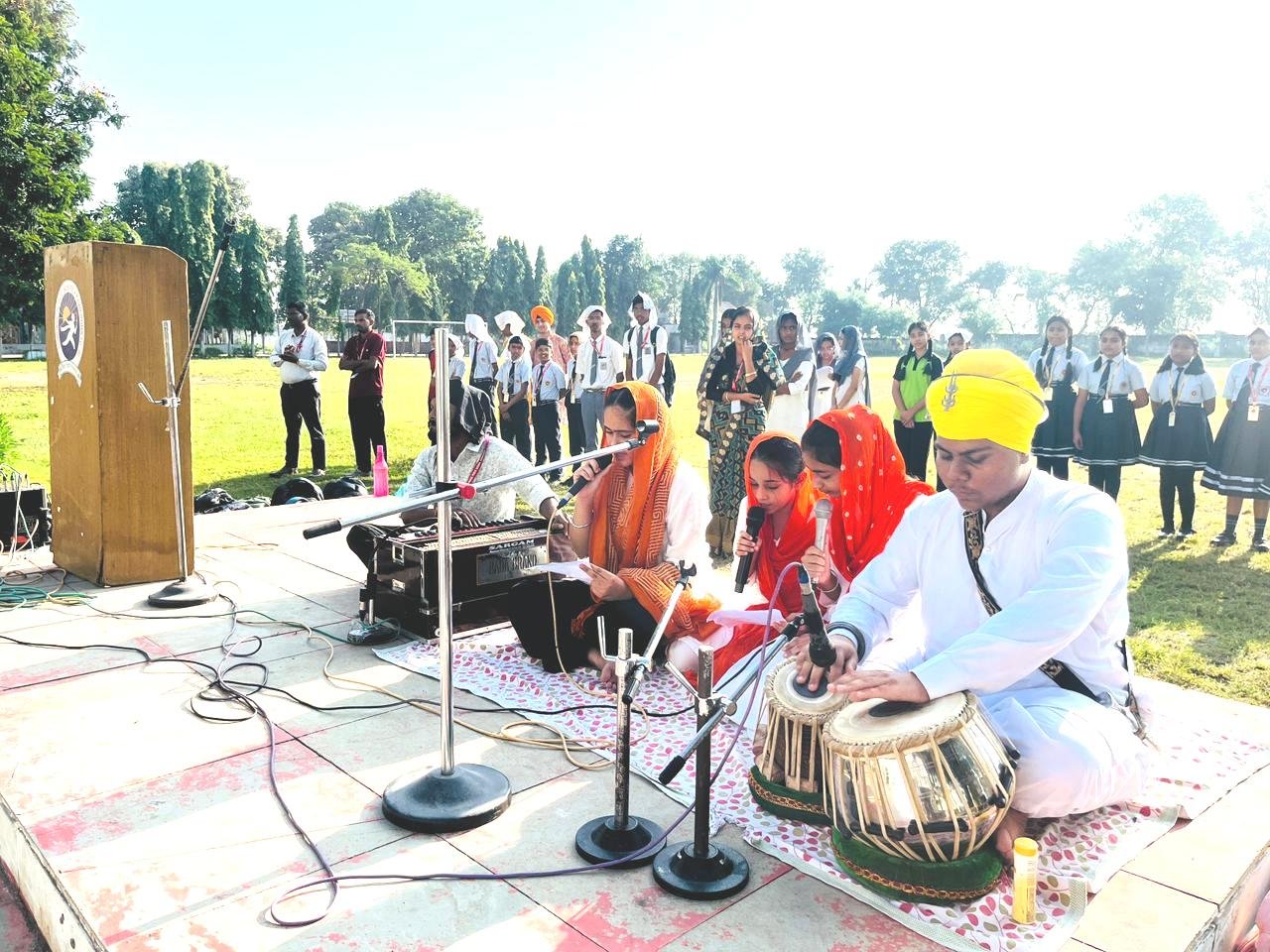जिसमें संगीत विभाग के विद्यार्थियों द्वारा शबद कीर्तन पाठ किया गया। संगीत की मधुर धारा ने विद्यालय परिसर को आप्लावित कर सभी श्रोताओं एवं दर्शकों को मंत्र मुक्त कर दिया। 10वीं-11वीं की छात्राओं ने गुरु नानक देव जी महाराज की जीवनी पर प्रकाश डाला। उनके लोक कल्याणकारी सेवा भाव को रेखांकित किया। इस आयोजन पर संस्था के अध्यक्ष, समस्त पदाधिकारी गण एवं प्रभारी प्राचार्य ने हर्ष व्यक्त किया और सभी को गुरु नानक देव जयंती की हार्दिक बधाई एवं शुभकामनाएँ प्रदान कीं।