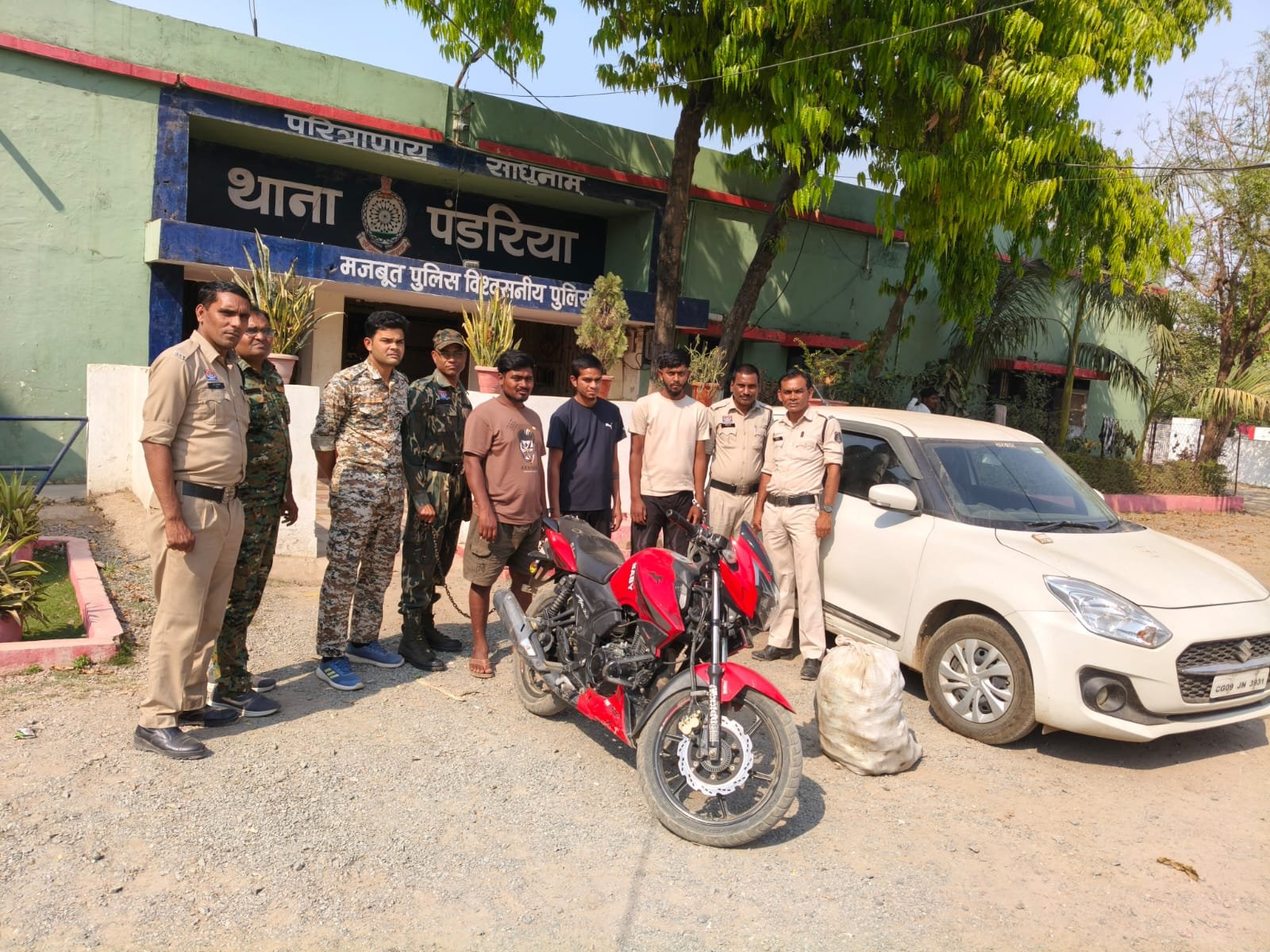 सूचना मिलते ही पुलिस ने वरिष्ठ अधिकारियों को अवगत कराते हुए तत्काल टीम गठित की और बताए गए स्थान पर घेराबंदी कर रेड कार्रवाई की। कार्रवाई के दौरान पुलिस ने तीनों आरोपियों को पकड़ लिया। गिरफ्तार आरोपियों में जितेंद्र बंजारा उर्फ जित्तू (19 वर्ष) निवासी नवागांव हटहा, दिनेश उर्फ छोटा जोगी (21 वर्ष) निवासी वार्ड नंबर 08 घोघरापारा पंडरिया तथा देवकुमार टंडन उर्फ नानू (28 वर्ष) निवासी वार्ड नंबर 10 मोतिमपुर पंडरिया शामिल हैं।