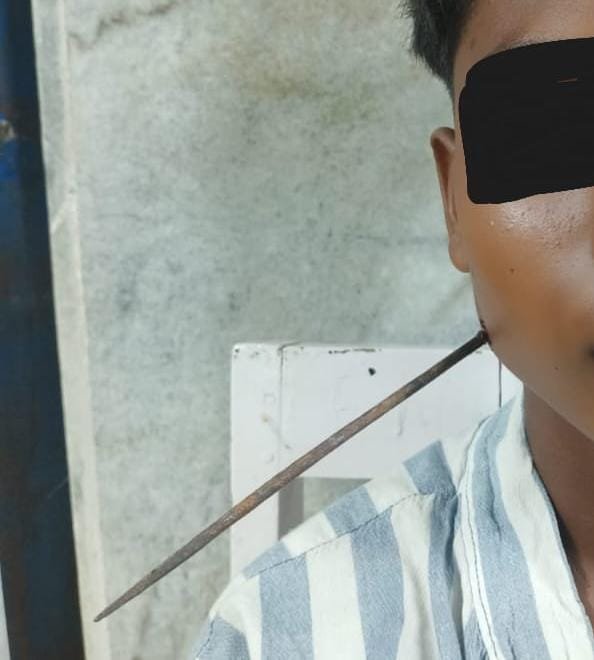 7 सेंटीमीटर तक चेहरे में घुसा औजार, घायल बालक को जान के जोखिम से बाहर लाया